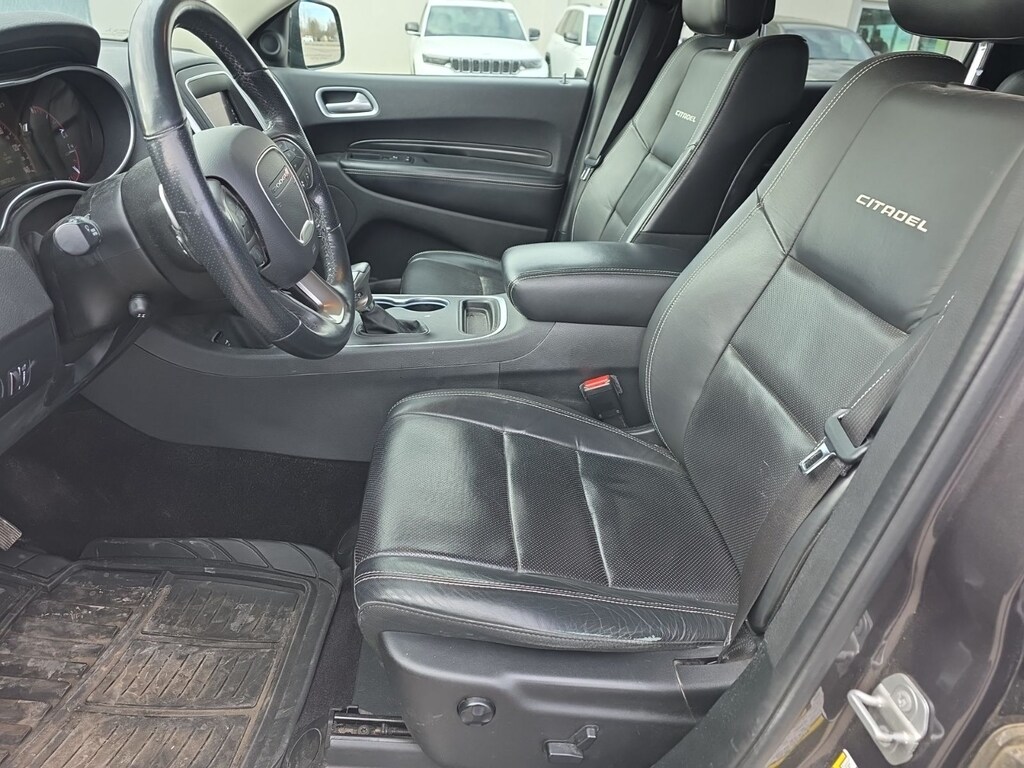 The Durango Citadel's striking gray exterior exudes confidence, while the spacious and well-appointed interior offers a premium driving experience. Heated front and rear seats, a heated steering wheel, and ventilated front seats provide year-round comfort. The Uconnect 4C Nav system with an 8.4-inch touchscreen display keeps you connected and entertained, with features like navigation, SiriusXM radio, and a premium 9-speaker audio system.