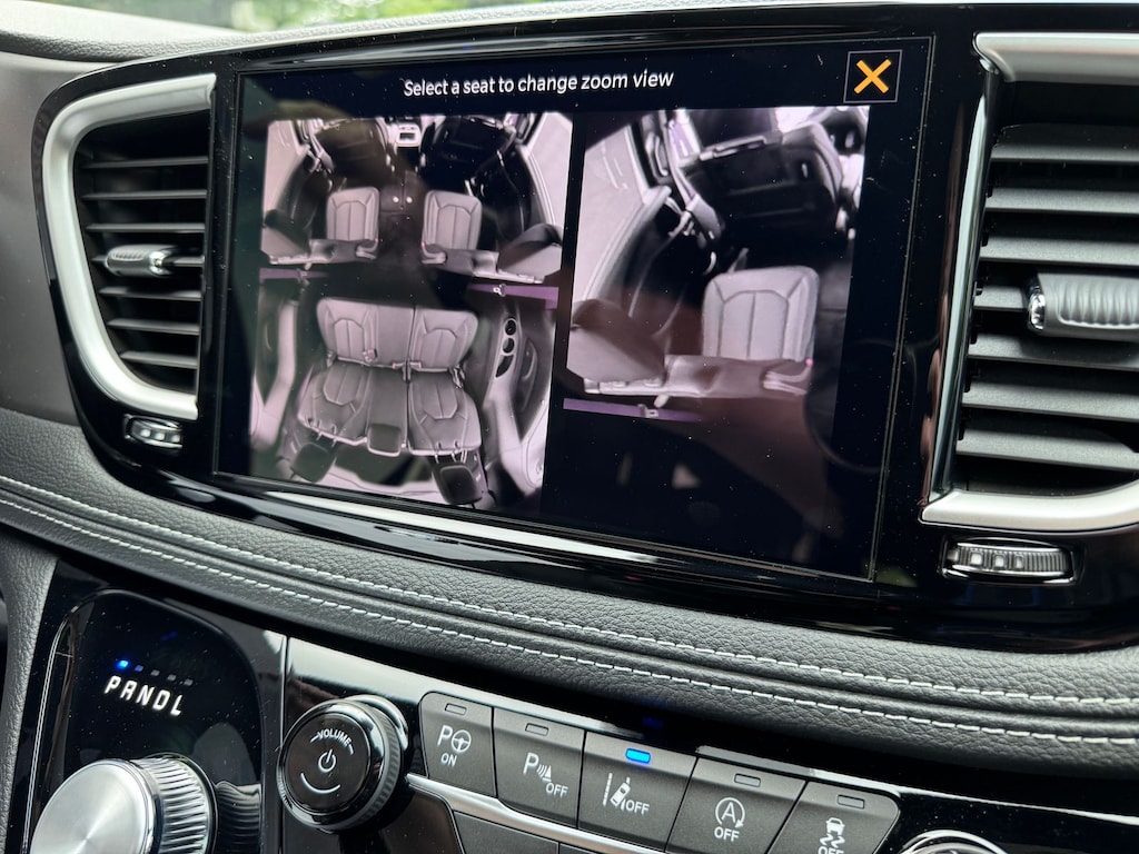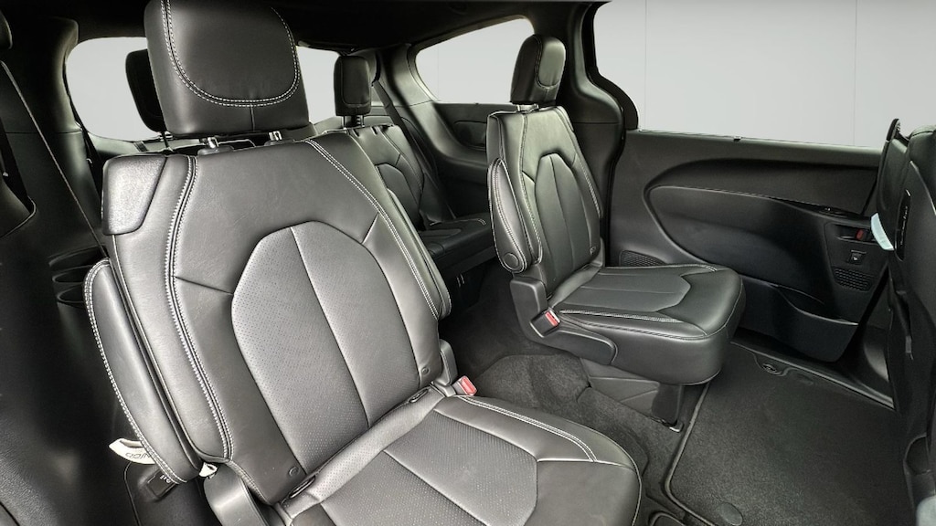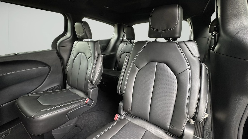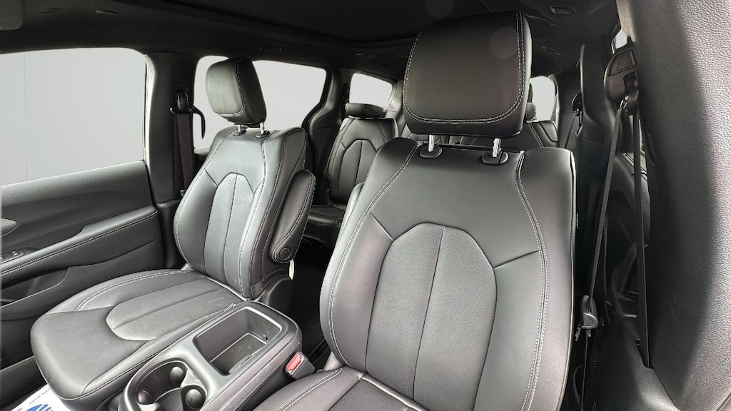 Optional features on this model include the Safety Sphere Package with a 360 Surround-View Camera, Parallel and Perpendicular Park-Assist, and Front Park Sensors. The Uconnect Theater Family Group adds built-in Amazon Fire TV, dual seatback screens, FamCam interior monitoring, Blu-ray DVD player, 13 Alpine speakers, 506-watt amplifier, hands-free power sliding doors, and a hands-free power liftgatemaking this the ultimate road trip companion. Also equipped with a dual-pane panoramic sunroof, Stow 'n Vac built-in vacuum, splash guards, and paint protection film.