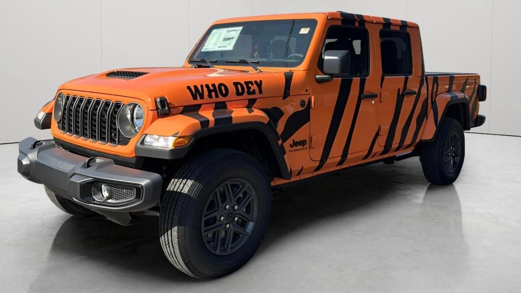 If you're searching for a 2025 Jeep Gladiator 4x4, custom Gladiator, Jeep pickup truck, or a Bengals-themed Jeep, this one checks every box for performance, technology, and head-turning style. Price includes: $2000 - 2025 National Select Inventory Bonus Cash w/ 3FV . Exp. 02/02/2026 $2250 - 2025 National Retail Bonus Cash . Exp. 02/02/2026 Price includes $2,374 in dealer added accessories.