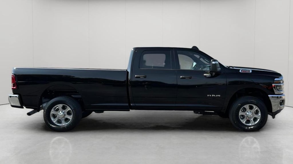 Dominate the road and job site in this 2025 Ram 2500 Big Horn Crew Cab 4x4 Long Box, finished in sleek Diamond Black Crystal Pearl-Coat with a durable Black cloth premium bench seat interior. Engineered for serious performance, this heavy-duty truck is powered by a 6.4L V8 HEMI HD engine paired with a robust 8-speed automatic transmission, delivering the strength you need for hauling, towing, and tackling any challenge.