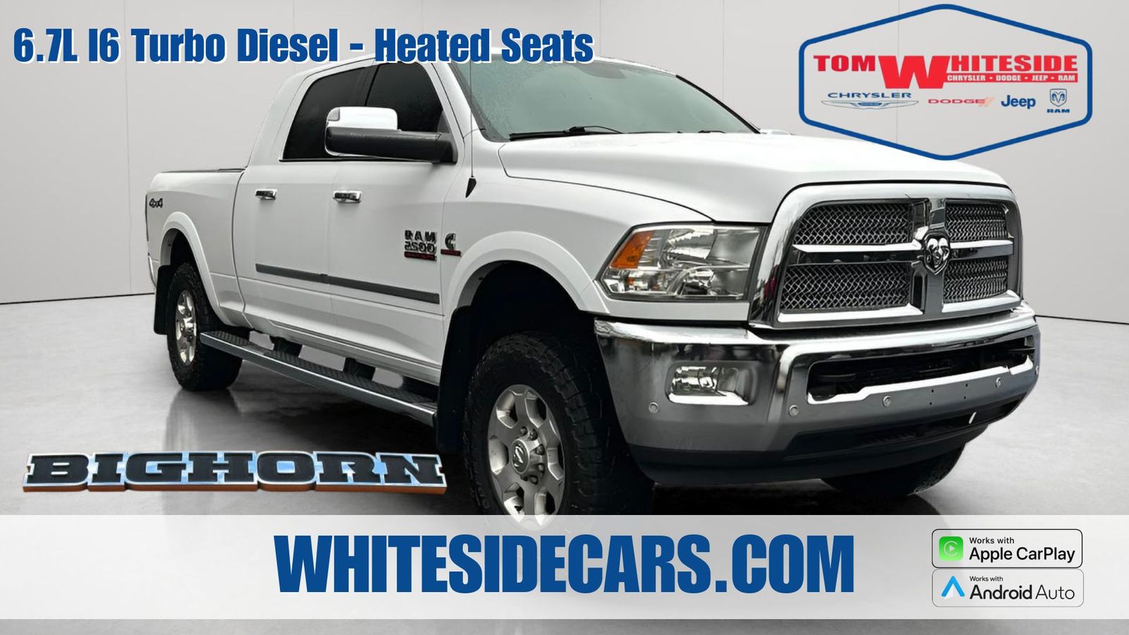 Stock #: 925228, Bodystyle: Truck Mega Cab, Engine: 6.7L I-6 cyl, Transmission: 6-Speed Automatic, Drive Line: 4x4, Mileage: 144,738 miles miles, Exterior Color: Bright White, Interior Color: Diesel Gray/Black, VIN: 3C6UR5ML2JG108441, Model Code: DJ7H81